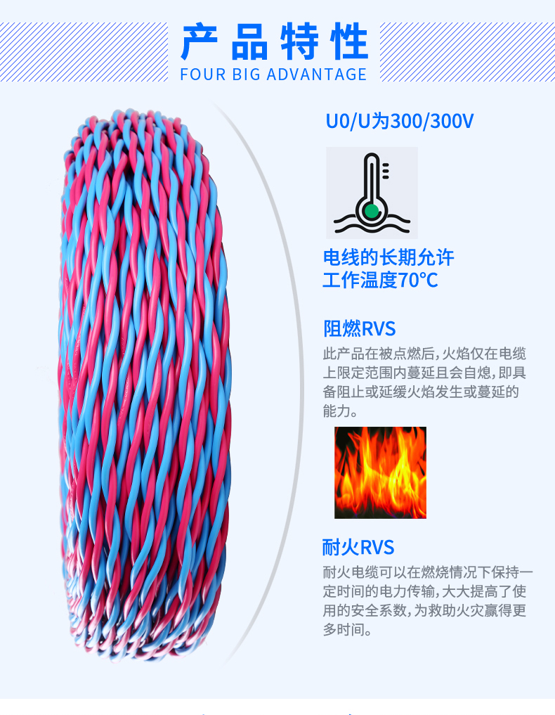 RVS是我们说的胶质线,音响线,有zr-rvs阻燃型,nh-rvs耐火型,wdz-rvs低烟无卤型。因此,常用作消防线。R是